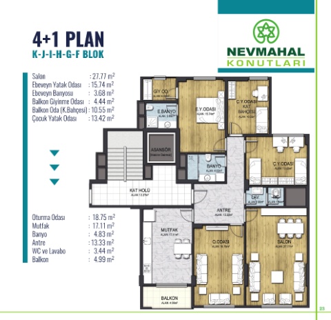 Ebeveyn Yatak Odası : 15.74 m²